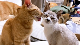 ペロペロ大好き♡お兄ちゃん猫と柴犬に優しくされて幸せいっぱいの子猫